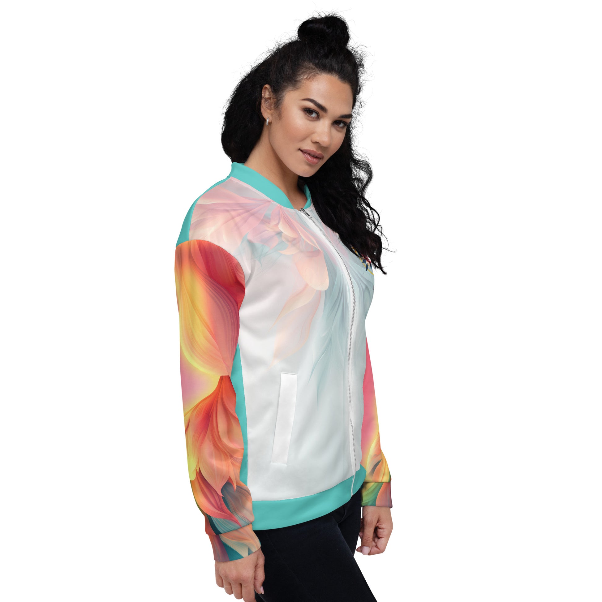 Add a little zing to your wardrobe with this vibrant All-Over Print Bomber Jacket. Wear it on a basic t-shirt, or layer it on top of a warm hoodie—it’ll look great either way. With a brushed fleece inside, and a relaxed unisex fit, this Bomber Jacket is just the stuff of the dreams, so be quick to grab yourself one!
